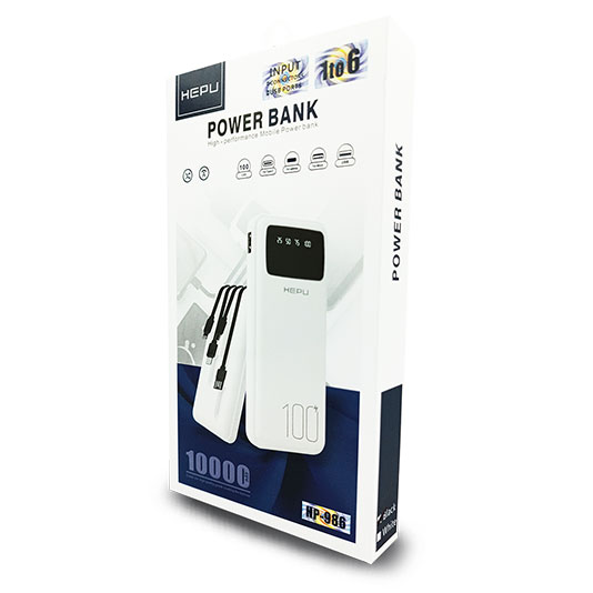 اکثر این وسایل دارای باتری قابل شارژ هستند. همین مسئله باعث میشود که ما برای استفادهی مداوم از ابزارها و دستگاههای دیجیتالی خود به شارژر احتیاج پیدا کنیم. پاور بانک HEPU HP986 محصولی از برند «HEPU» هست. این محصول با طراحی منحصر به فرد دارای 6 خروجی همزمان فعال می باشد. نکته ی قابل توجه این است که شما نیاز نیست برای شارژ تلفن های همراه خود و اطرافیان، کابل های متنوع و متعدد به همراه بردارید، این محصول دارای کابل هایی متصل به بدنه، نظیر Type -C ، Lightning و microUSB بوده که در زیر پاور بانک به شکلی هنرمندانه پنهان شده اند و همچنین دارای دو خروجی USB دیگر در خود می باشد.